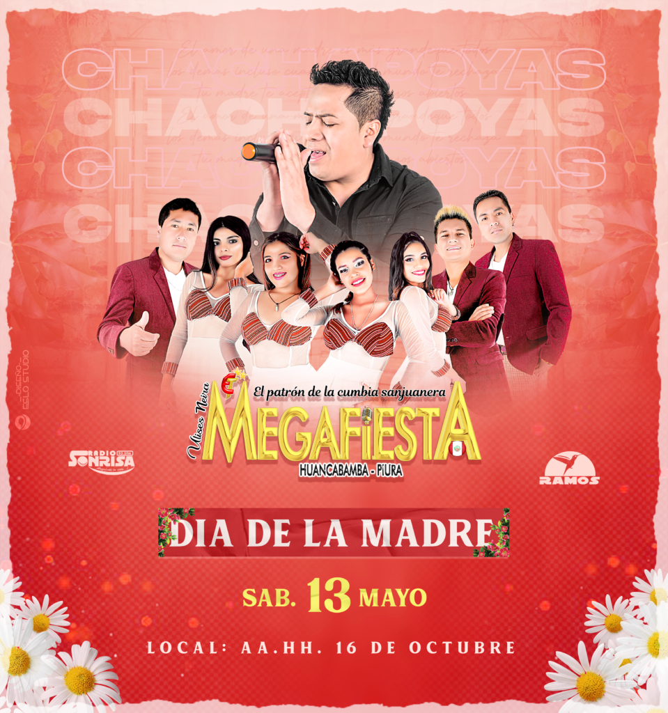 Este Sábado 13 de mayo el Patron de la Cumbia Sanjuanera Ulices Neyra y su Grupo Mega Fiesta se hacen presente en la serenta del día de la Madre en la ciudad de chachapoyas
